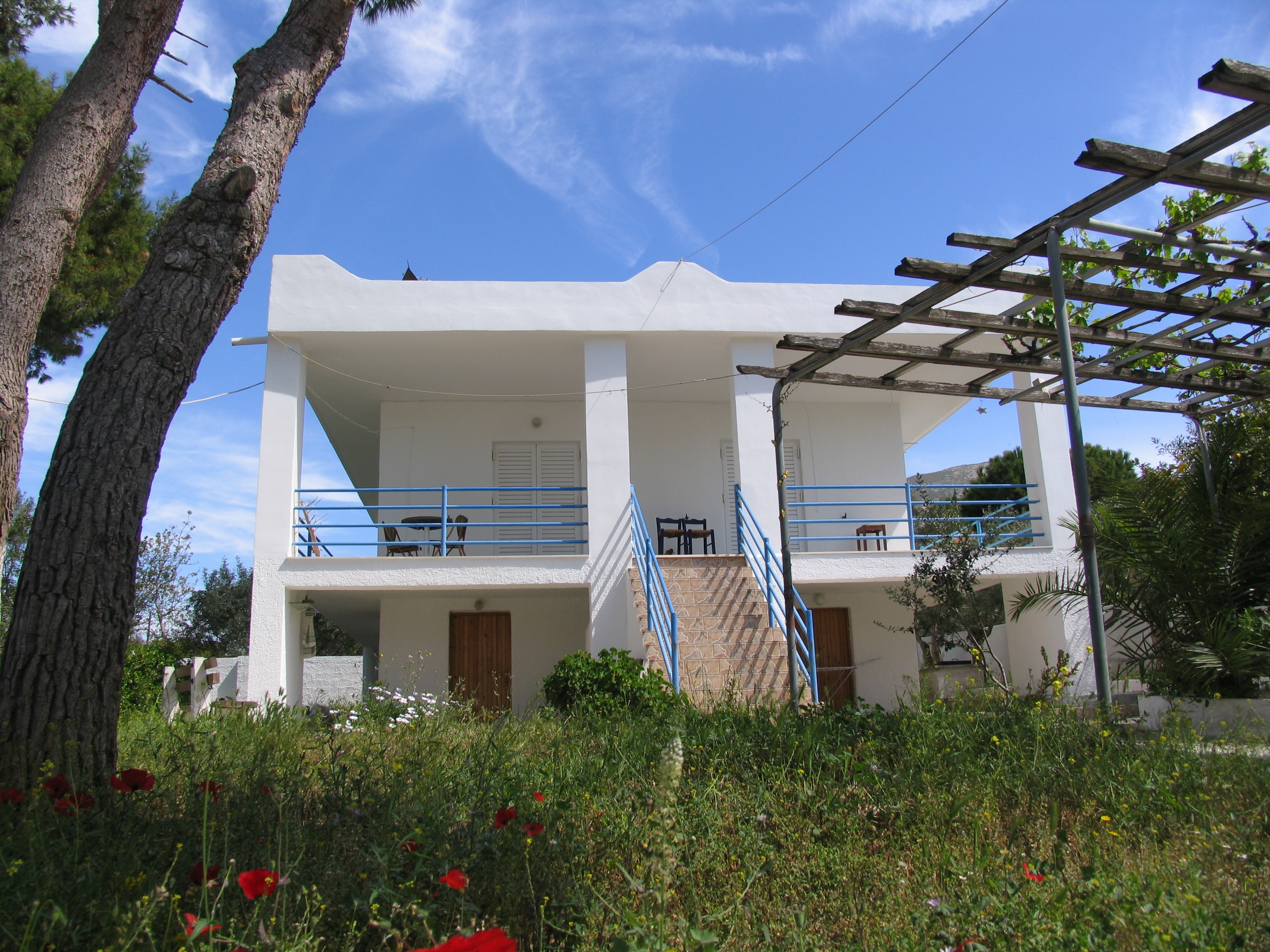 De magnifiques chevaux Skyrian, gardiens de la Grèce antique, vivent sur le lieu, accompagnés de poules et de Vanilla, une chèvre.